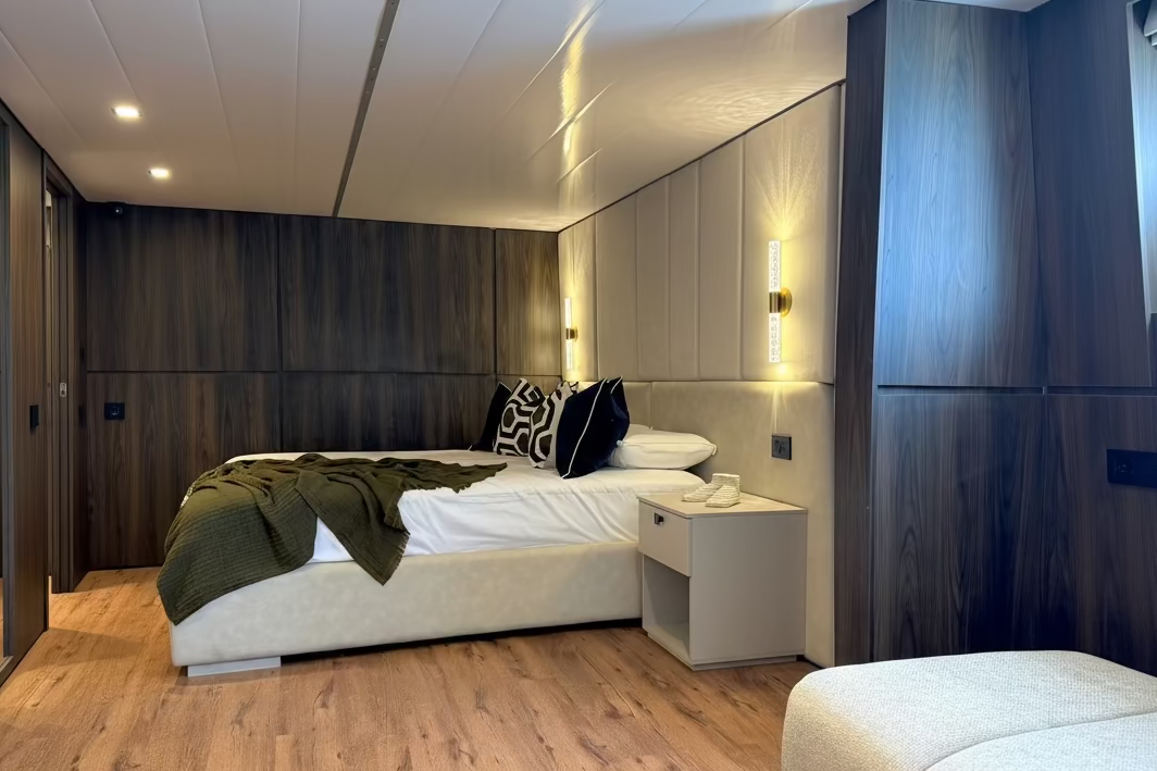 Cuidadosamente concebida y refinada en cada detalle, esta cabina del capitán forma parte de una reforma integral a bordo de un barco con bandera estadounidense dedicado al comercio exterior. La ampliación y redistribución del espacio mejoran la fluidez, el confort y la eficiencia operativa.